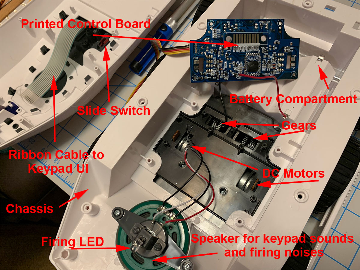 I began a teardown of the Big Trak to get to the interior and learned how the User Interface / keypad was wired into the Print Control Board.