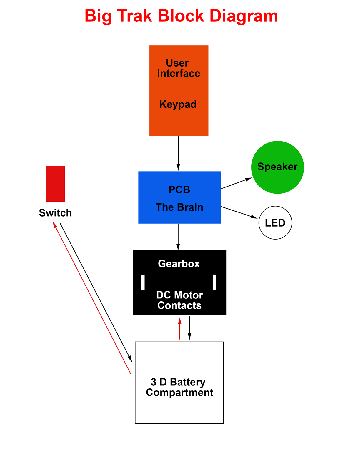 This is a schematic of how everything comes together to work and power the Big Trak.